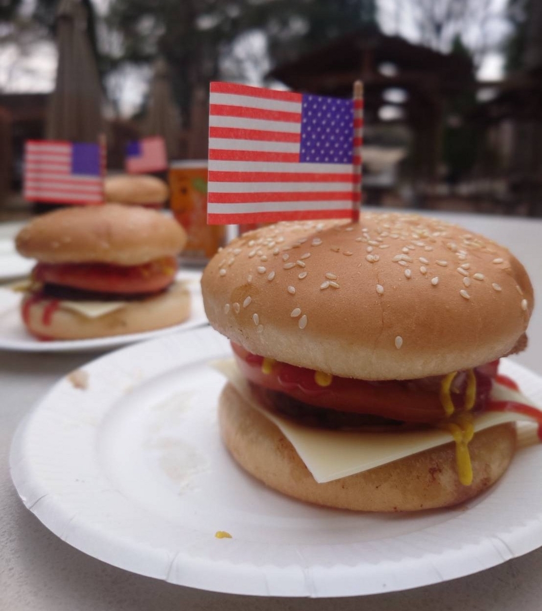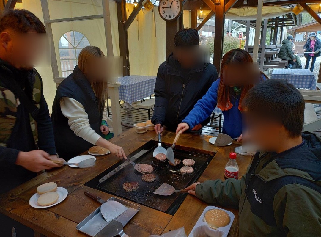 お昼前に片付けを済ませて一旦チェックアウトしてからアメリカンハンバーガー作りをやりました🍔