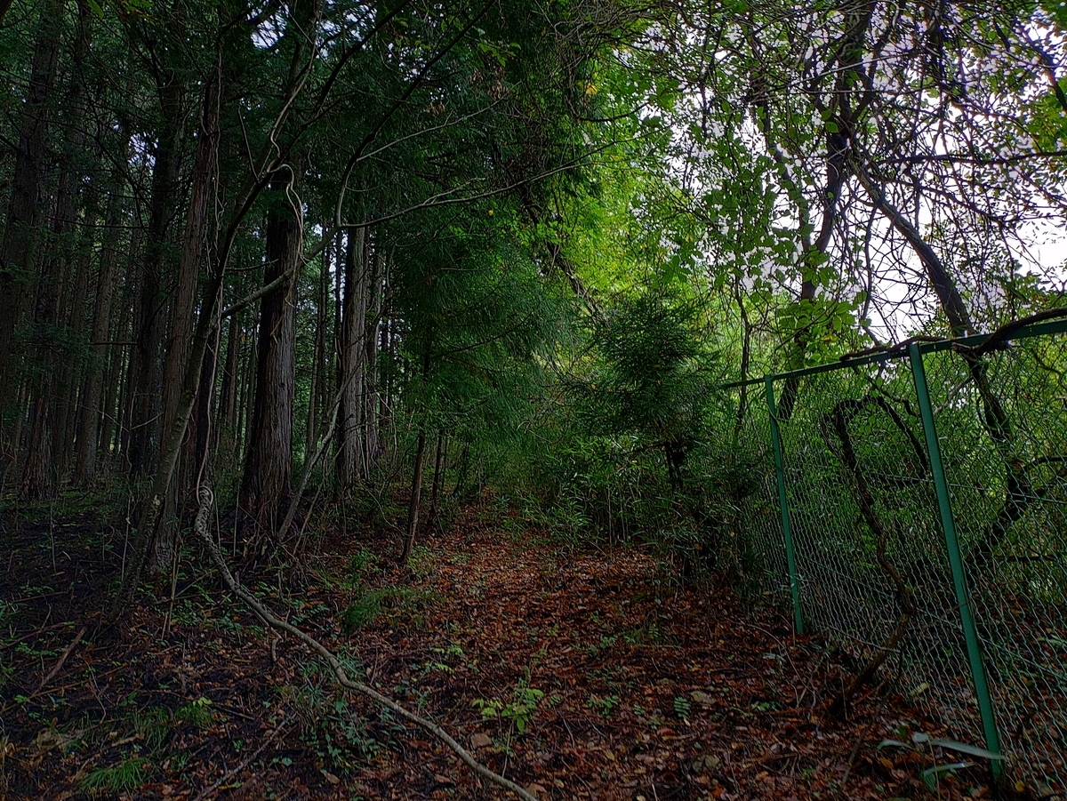 余談ですが、帰りにクルマで近くの山の林道をドライブし、少し広くなった所にクルマを停めて周辺を散策していたら、右足の靴下に違和感が···