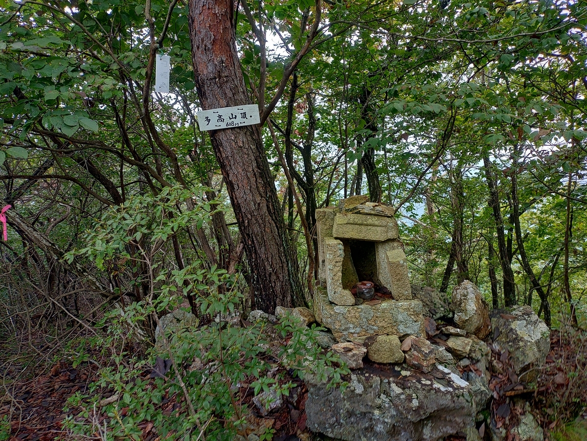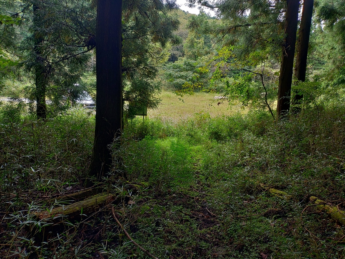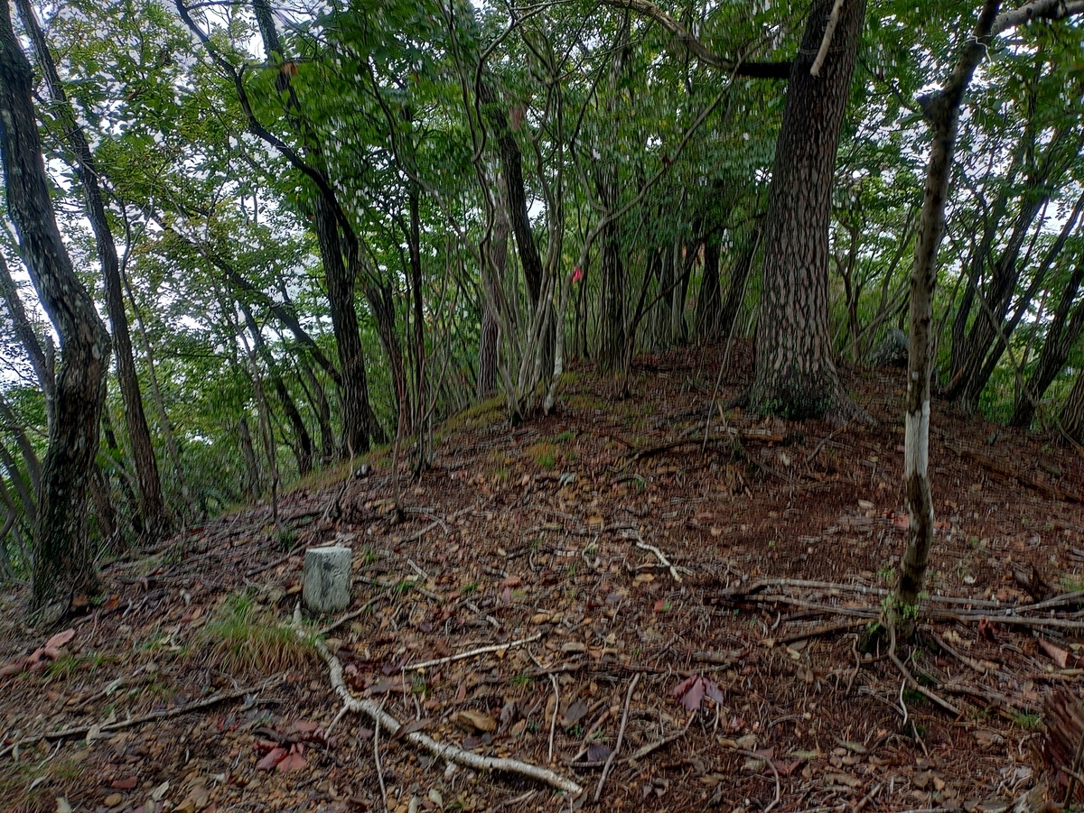 頂上からの眺めは良くありません🫣木々のスキマからふもとのゴルフ場がかろうじて見えるくらいです。