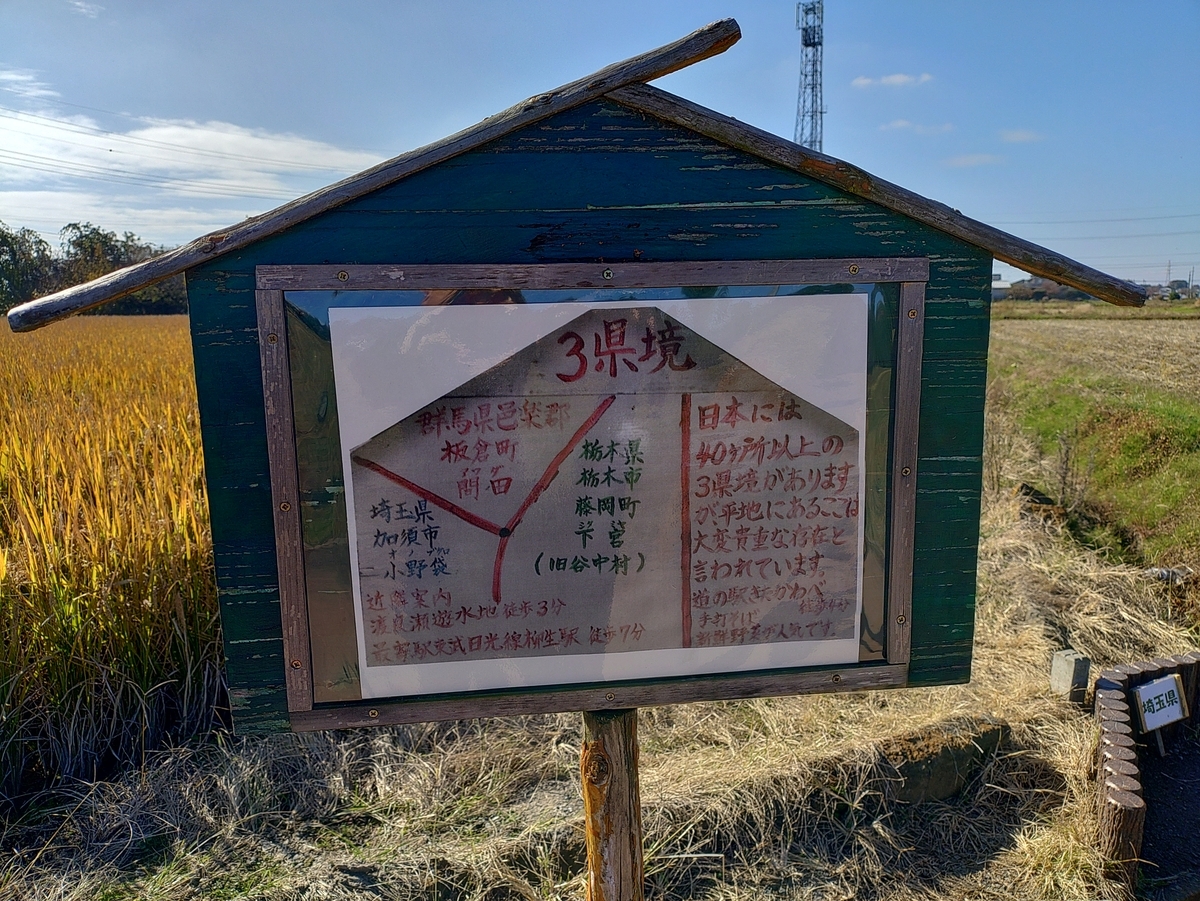 埼玉県、栃木県、群馬県の三県の県境が平地にある珍しいらしいスポットへテクテクと歩きました。